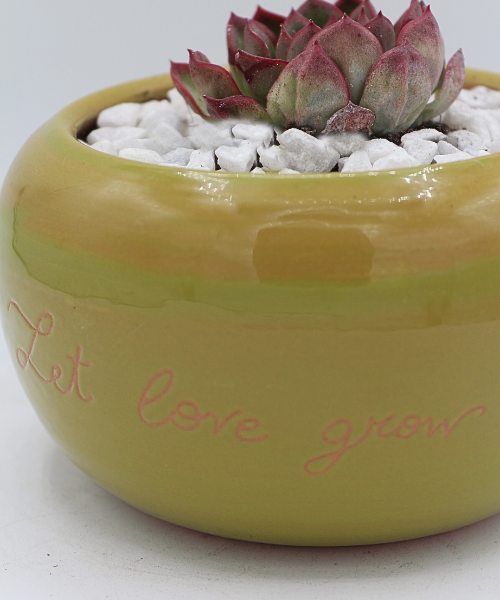 Vaso incisione Let love grow su fondo colorato